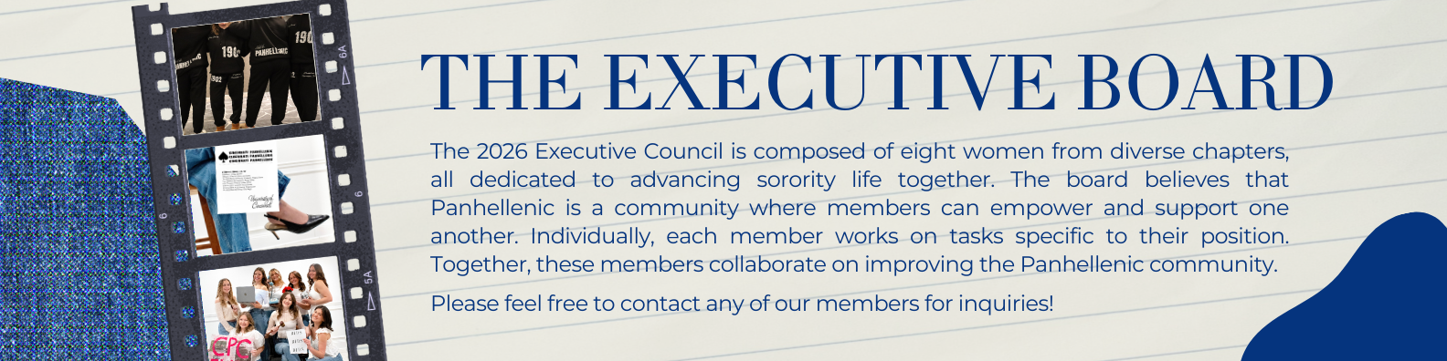 The CPC President is the primary contact for the Panhellenic Executive Board. They support all other officers, and they sit on committees as needed. They serve as the chief spokesperson.